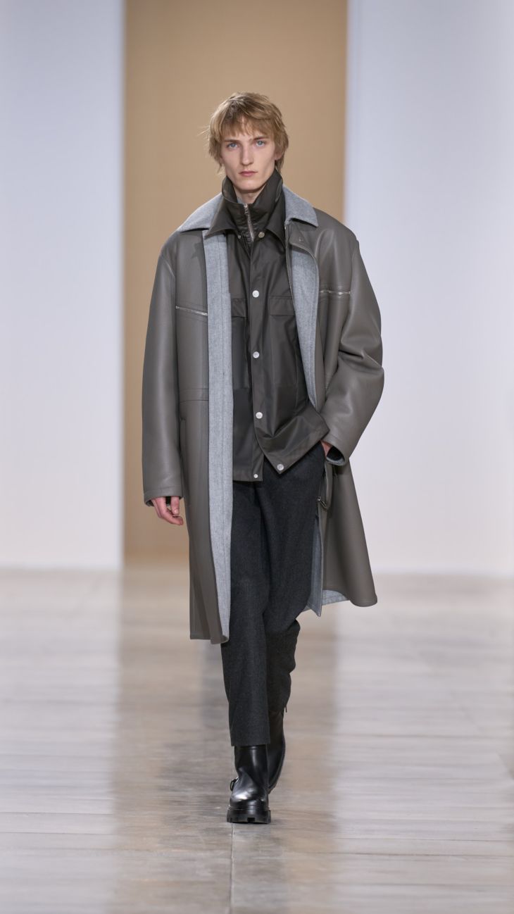 Hermès’ focus this season was on precision and transformation, as throughout Véronique Nichanian’s tenure as men’s universe artistic director, she has consistently emphasized revitalization and “forward movement.” Yet, the adaptability and reversibility promised in some of the garments were obfuscated by a largely static runway. Everything was zipped up, buttoned up, or under a scarf!